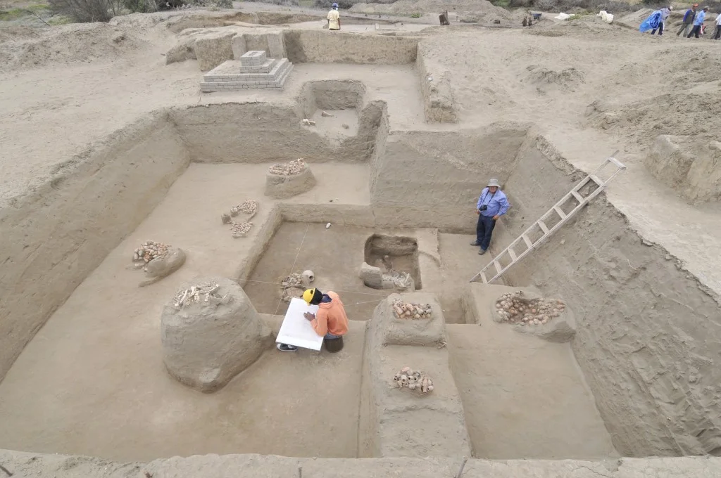 The most prominent person was buried at the centre of the funeral group, in a tomb containing offerings, such as two clay pots, and a sculpted vessel in a shape suggesting the head of a coquero (a man chewing coca leaves).
